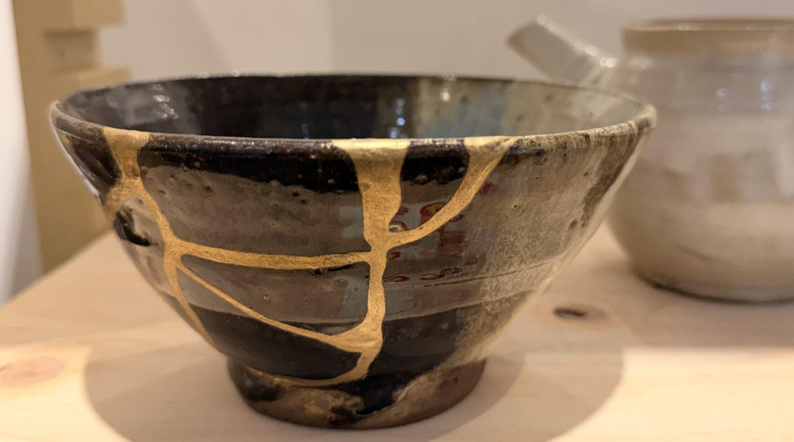茶道では完璧な器よりも、傷や歪みのある器に味わいを見出す「侘び」の精神が重んじられているので、継ぎ目を隠すのではなく金であえて強調するという発想は、まさにこの美意識の表れだそうです。