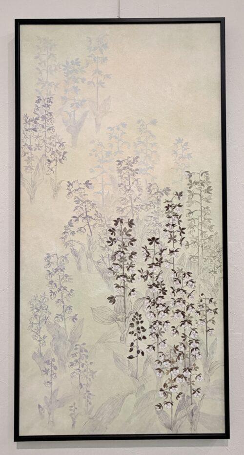 岩絵具の柔らかな色合いの花々が静かに咲き乱れ、まるで別世界のよう。
